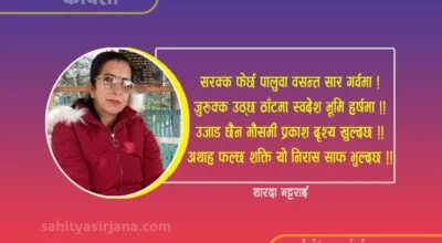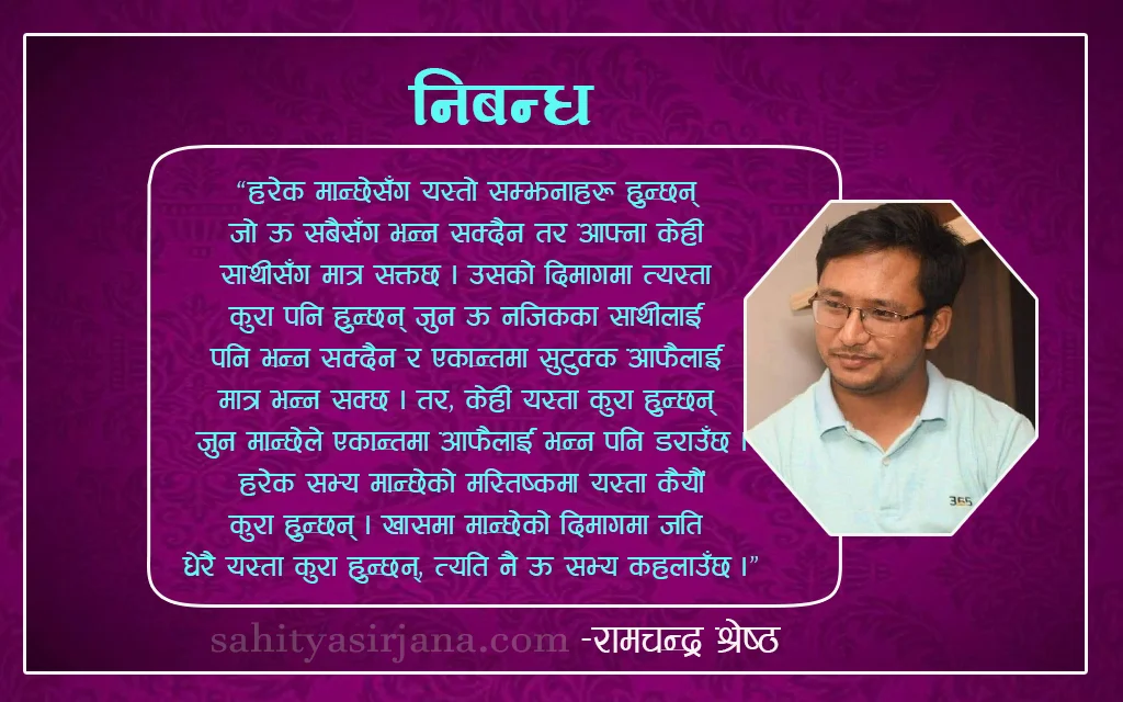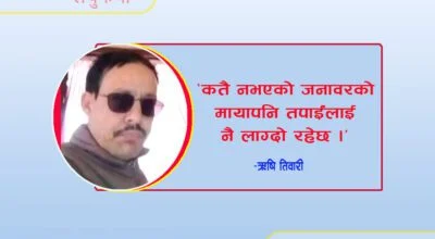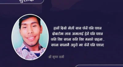 -रामचन्द्र श्रेष्ठ “कहाँसम्म जानु हुने ?” २० मिनेट उभिएपछि सिट पाएको थिए । बसको ढोकाको ठ्याक्कै अर्को साइड, ड्राइभर र क्याबिनको ठ्याक्कै पछाडि । मेरो
