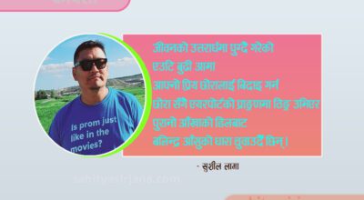 – सुशील लामा देशलाई प्रगति पथमा दगुराउन अति आवश्यक युवा शक्ति गाउँ-घर,बस्ती-समाज सजाउँदै बा-आमाको बाँकी जिन्दगीको सहारा बनेर आफ्नै माटोमा बाँच्नु पर्ने मुटुभरि तन्नेरी रगत बोकेको हुलका हुल युवा-युवतिहरू बिपना