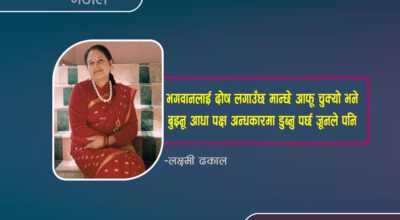 -प्रकाश शर्मा “आँसु” नसके आशीर्वाद लिन तिम्रो व्यर्थ जीवन जाने’छ आमा सम्झिदा तिम्रा ती निर्दोष आँखा कटक्क यो मन खाने’छ आमा सहज तिम्रो मुस्कान भित्र कठोर पीडाको आभास हुँदा बाचा