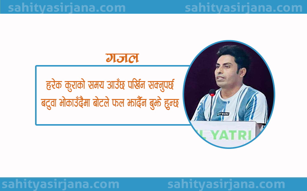 -सुशील सापकोटा खुसी आँसु अस्थिर छन् सधैँ एउटै बात रहन्न आउँछ बिहान पर्ख एक छिन स्थिर यो रात रहन्न निराशाको यात्रा पुग्छ उमङ्गको गन्तव्यमा फेरि आउँछ अन्धकार एकोहोरो प्रभात रहन्न