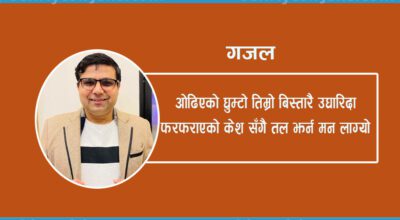 डा. श्यामप्रसाद न्यौपाने जिन्दगी कसरी टुङ्गिन्छ कसलाई के थाहा परानको पोयो कहिले छिन्छ कसलाई के थाहा दुर्योधनझैँ अभिमानी हुनु पर्दैन कसैले समयले कस्तो उपहार दिन्छ कसलाई के थाहा